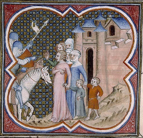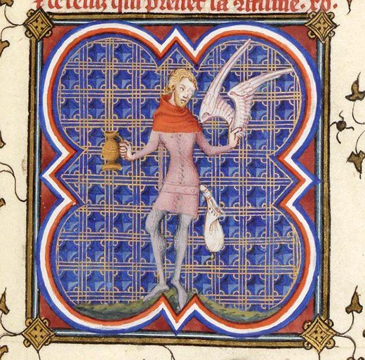 L'AUMONIÈRE (Roman d'Alexandre 1340-1360 - Détail)