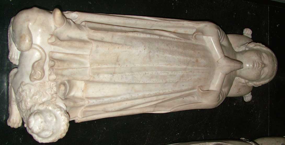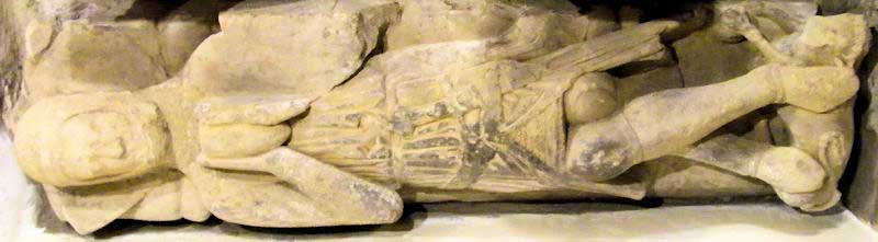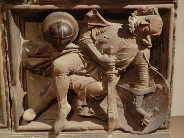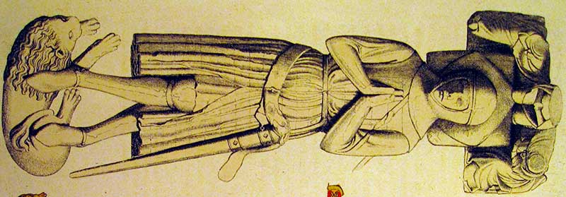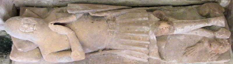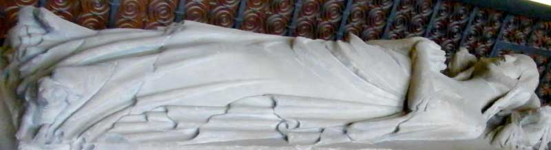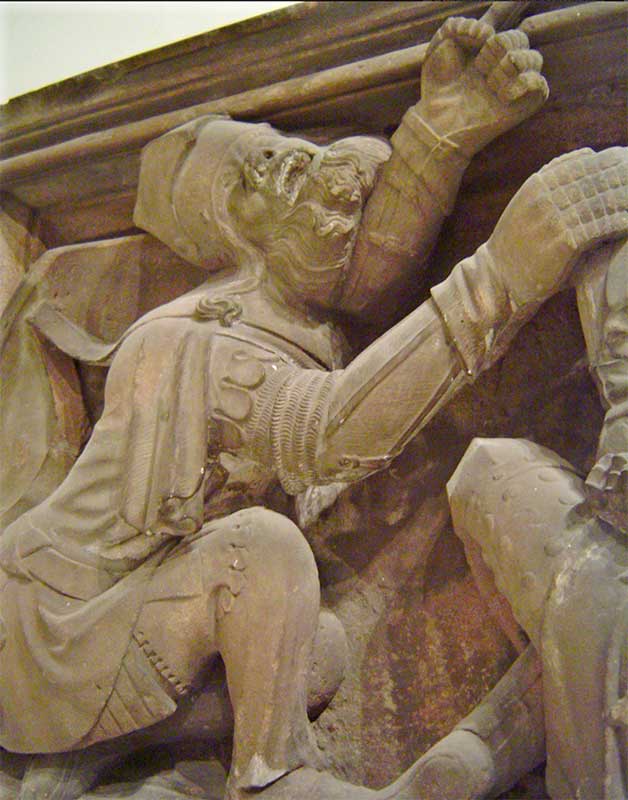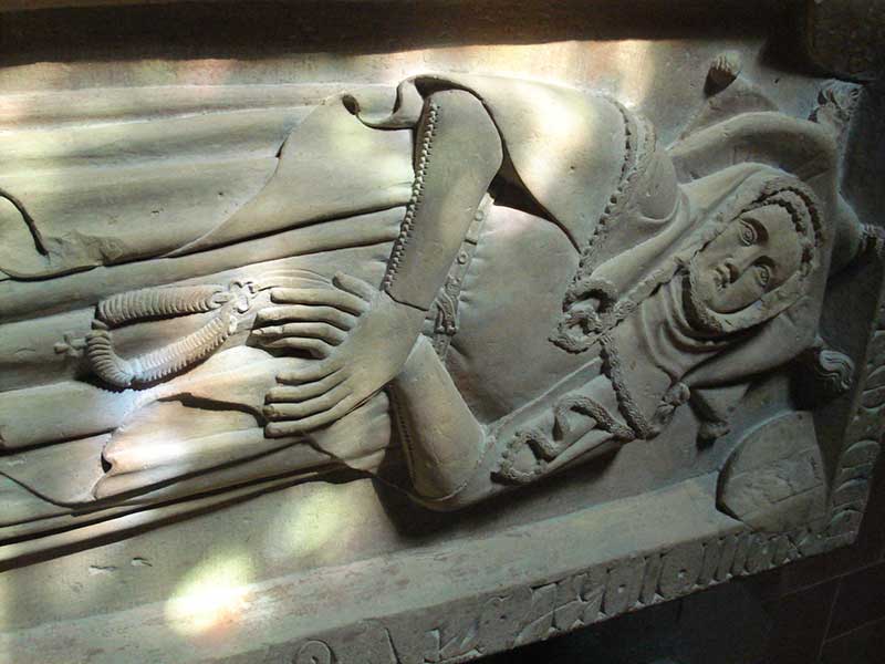 Gisants, effigies mortuaires, statuaire profane et autres sculptures sont intéressantes à plus d’un titre. Tout d’abord documentaire. Ensuite et surtout, par ce qu’elles nous apportent et nous apprennent sur le costume féminin et masculin au XIVe siècle, tant civil que militaire. Une magnifique source d’inspiration et de référence pour les médiévistes reconstituteurs. |