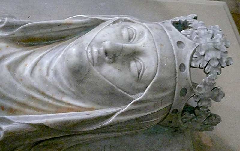 Blanche de France, épouse de l'héritier du royaume de Castille, fille de Saint Louis, fut au centre d’une crise politique entre les royaumes de France et de Castille. Elle naquit pendant la septième croisade, à Jaffa, Comté de Jaffa, l’an 1253, de Louis IX, roi de France, et de Marguerite de Provence. Elle fut mariée au prince héritier de Castille, Ferdinand de la Cerda, à Burgos, le 30 novembre de l’an 1268. Après la mort de ce dernier, survenue au mois de juin de l’an 1275, le roi Alphonse X de Castille fit de son fils cadet, Sanche, le légataire de la couronne au détriment des enfants de Blanche. Ceci provoqua une crise politique entre les royaumes de France et de Castille, alimentée par le refus du Castillan de laisser l’infante présomptive rejoindre sa patrie avec ses enfants. Philippe III, roi de France, engagea les hostilités au printemps de l’an 1276, d’abord en Navarre, puis, durant l’été, par la mobilisation de ses vassaux dans les territoires du Midi ; mais les troupes françaises, fort mal préparées, renforcées tardivement, rebroussèrent chemin en novembre sans franchir les Pyrénées. On appela cette armée l’ost de Sauveterre-en-Béarn, du lieu où l’expédition s’était arrêtée. Blanche de France mourut entre le 17 juin 1320 et le 7 juin 1322. Elle avait fait bâtir une partie de l’église du couvent des Cordelières de Lourcine. Elle se retira à proximité à la fin de sa vie et se fit enterrer au couvent des Cordeliers de Paris. |