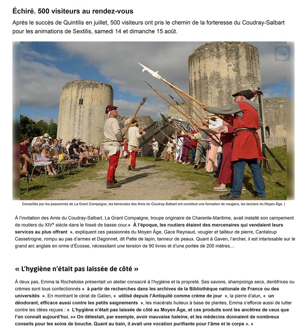 Article paru dans Ouest France sur notre intervention au Coudray-Salbart