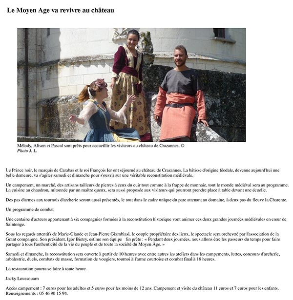 Article se référant à notre participation aux Fêtes Romanes en Pays Royannais