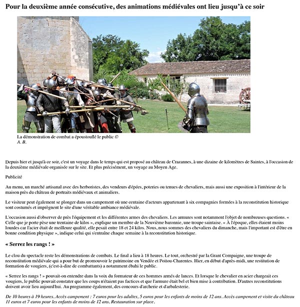 Article paru dans l'Hebdo de Charente-Maritime du jeudi 16 juillet 2015 |