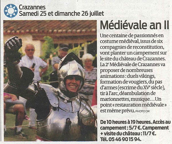Article paru dans Sud-Ouest du vendredi 24 juillet 2015 |
