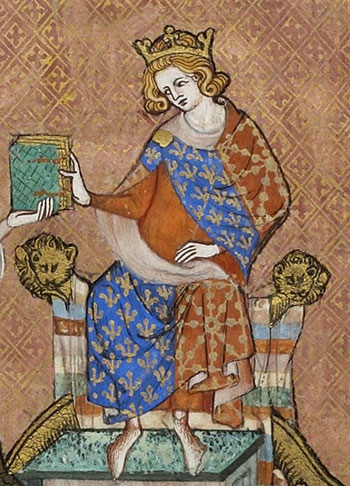 Philippe de Valois, né en 1293 et mort le 22 août 1350 à Nogent-le-Roi est roi de France de 1328 à 1350 sous le nom de Philippe VI, dit « le Fortuné » ou « le Catholique », est le premier roi de la dynastie capétienne des Valois, issue de la branche cadette de la maison capétienne fondée par son père Charles de Valois, frère cadet de Philippe IV le Bel. |