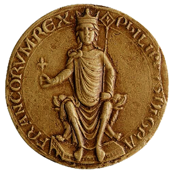 Philippe II dit « Auguste », né le 21 août 1165 à Paris et mort à Mantes le 14 juillet 1223, est le septième roi (1180-1223) de la dynastie des Capétiens et le premier monarque auquel est attribué le titre de roi de France. Il est le fils héritier de Louis VII et d'Adèle de Champagne. |