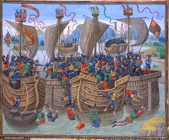 Le victorieux duc d’Anjou voulant toujours montrer les vraye amour et affection qu’il avoit au Roi son frère et à son royaume et pareillement la hayne qu’il portoit à ses ennemis. L’An de grâce Mil trois cens soixante et treize entra avec grand nombre de gens d’armes au pays de Poitou et Xaintonge pour ce que la plupart des habitans tenoient le parti des Anglois. Si vint mettre le siège devant La Rochelle et fit tant qu’il eut l’acointance du Maire de celle ville nommé Jehan Coudorier lequel lui promit ayde et secours comme au Lieutenant du Roi de France son souverain Seigneur. Si en parla icelui Maire aux plus suffisans de la ville remontrant le grand danger auquel ils étoient d’être pris d’assault et le bon droit du Roi de France et plusieurs autres raisons, et tant les precha qu’ils furent tous d’opinion de recevoir le Duc d’Anjou en leur ville. Mais ils ne sçavoient comment ils pourroient lui livrer le Chasteau, pour ce que dedans étoient plusieurs Anglois en garnison. Toutefois le Maire leur dit qu’il pourvoyeroit bien à cela.